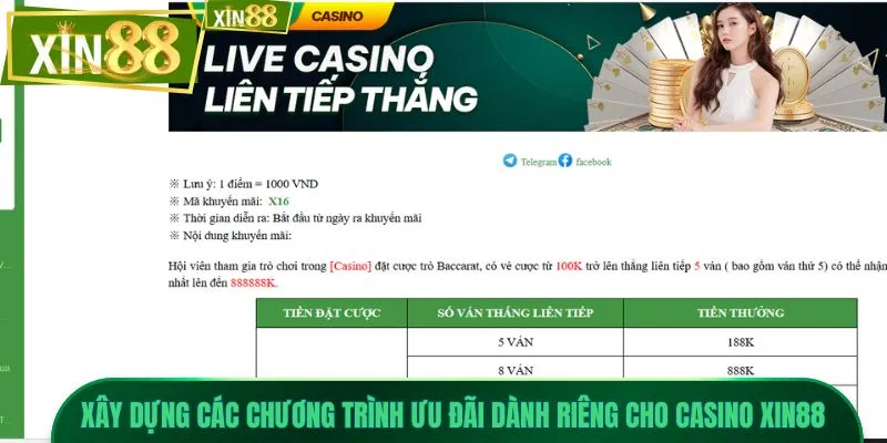 Nhằm gia tăng trải nghiệm cho người chơi, sảnh casino Xin88 thường xuyên triển khai nhiều chương trình ưu đãi hấp dẫn. Các ưu đãi được thiết kế rõ ràng, giúp hội viên dễ tiếp cận và tận dụng hiệu quả trong quá trình tham gia.