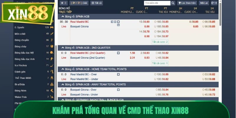 CMD Thể thao Xin88 mang đến đầy đủ các loại kèo cho mọi trận đấu. Người chơi dễ dàng lựa chọn, theo dõi tỷ lệ cược và đưa ra quyết định nhanh chóng.