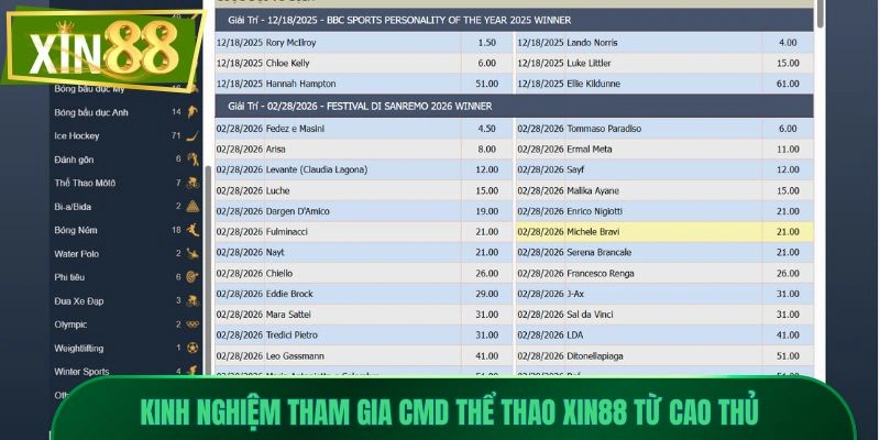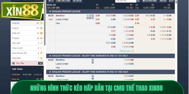 CMD Thể thao Xin88 với các loại kèo phổ biến