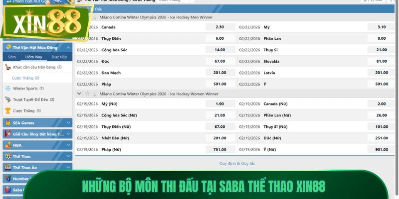 SABA Thể thao Xin88 với các môn thi đấu và loại kèo