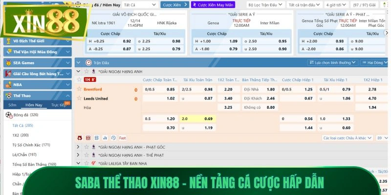 SABA Thể thao Xin88 – Cá cược thể thao hấp dẫn và đa dạng